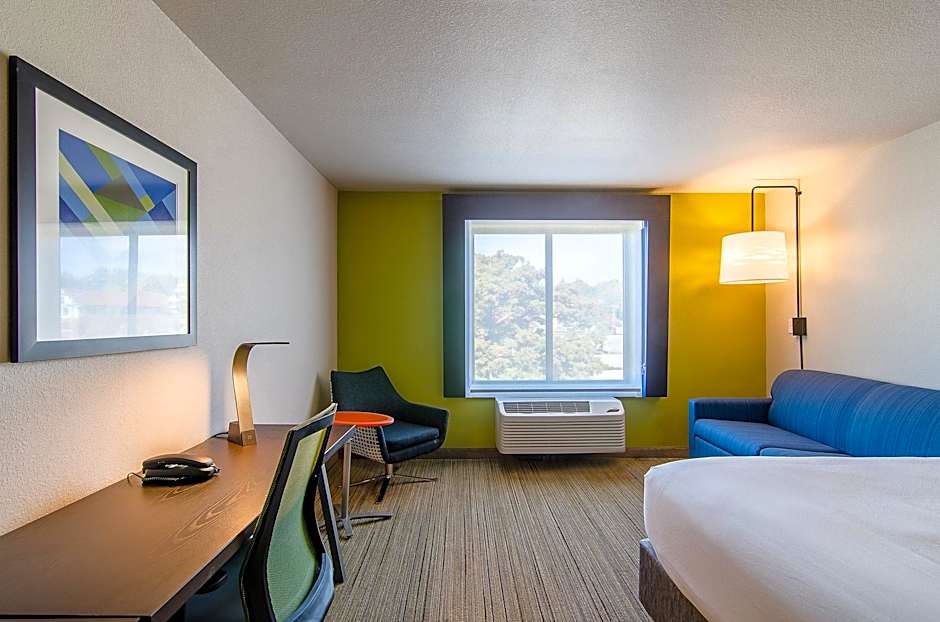 This air conditioned room features a king-sized bed, desk and a flat screen TV with cable channels.